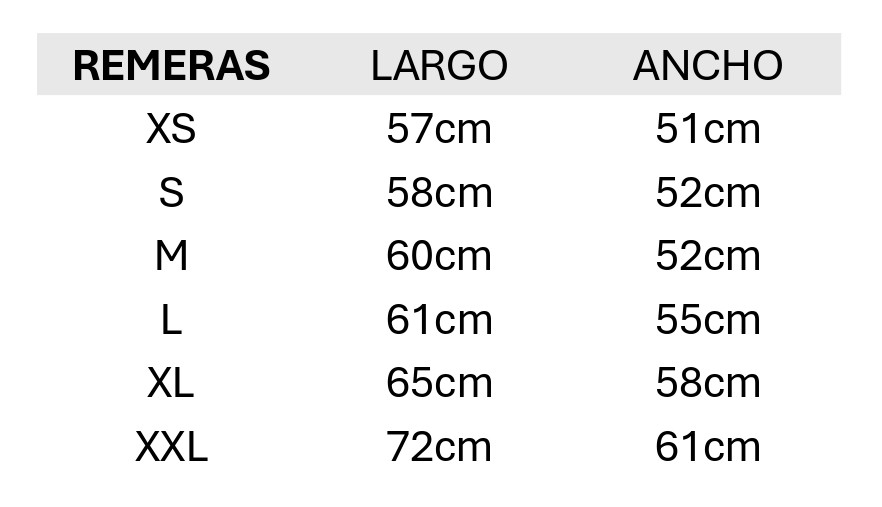 Talles remeras
